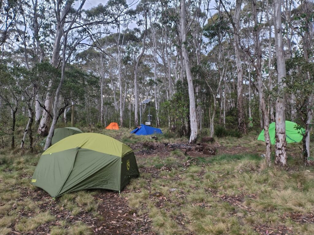 Leaving around 5pm in the afternoon the patrol hiked into the Murrays Run camp ground and pitched the tents for the night, while having a yummy dinner by a warm campfire. The following day they continued down the barrington trail to the Junction Pools camp area, when it really got fun! Battling through the thick scottish broom across Aeroplane hill and around the black swamp before making it to Careys peak, and eventually their campsite at Wombat Creek.